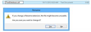 Now rename that file and change it's file extension to TestDatabase.udl (take note of the file extension).